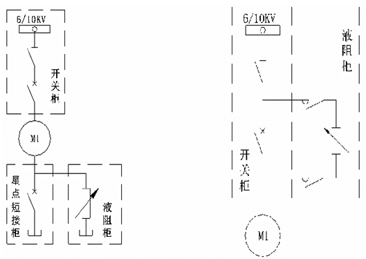 定子側串入液體電阻本質上屬于降壓起動。對于大功率高壓籠型電動機而言,在電網短路容量及變壓器容量不是足夠大或瞬時機械沖擊過大時,是最佳起動方式之一。