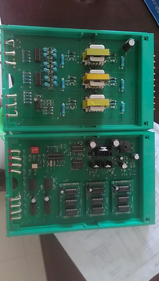 一、 開車 1.打開進相器前柜門,合上空氣開關 QF1),進相器電源接通,柜體面板上的紅色指示燈,等待主電動機直動,關閉柜門。 2.主電動機起動,一直到起動完畢,主電動機正常運轉為止。 二、 投入進相 1.打開柜門,觀察控制單元是否正常,控制單元正常時,各指示燈顯示如下: 主板(中間一塊)。除上面三個指示燈(L1、L2、L3)周期性循環顯示外(注意:此指電動機在運轉時的狀態。如電動機未轉,該三燈為隨機狀態), 其它五燈一直亮著。 驅動板(兩邊兩塊)。其上各指示燈(12個)均亮,并有微閃亮。 如有任一燈不符合上述狀態,則表明控制單元有故障,應維修好后方可進相。 2.用力按一下“進相”按鈕(SB1,綠色按鈕),進相器面板的紅燈滅、綠燈亮(HL2),開始進相。進相器上的電流表指針快速下跌并穩定,功率因數表指針快速上升并穩定(指針位于“滯后”區域)。 三、退相 用力按下“退相”按鈕SB2,紅色按鈕),紅燈亮、綠燈滅,進相器即退出進相狀態。 四、停車 進相器退相后,按下主機停車按鈕,電機即停車。