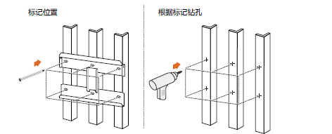 (10) 安裝壁掛架,在金屬支架上安裝需要在支架上對應壁掛架螺絲孔位置打孔,然后固定壁掛架。在墻面上安裝需在對應壁掛架螺絲孔位置打膨脹螺栓。