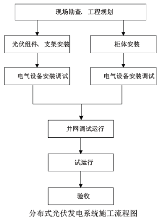 電氣設(shè)備安裝—設(shè)備調(diào)試-并網(wǎng)運行調(diào)試-試運行—竣工驗收。
